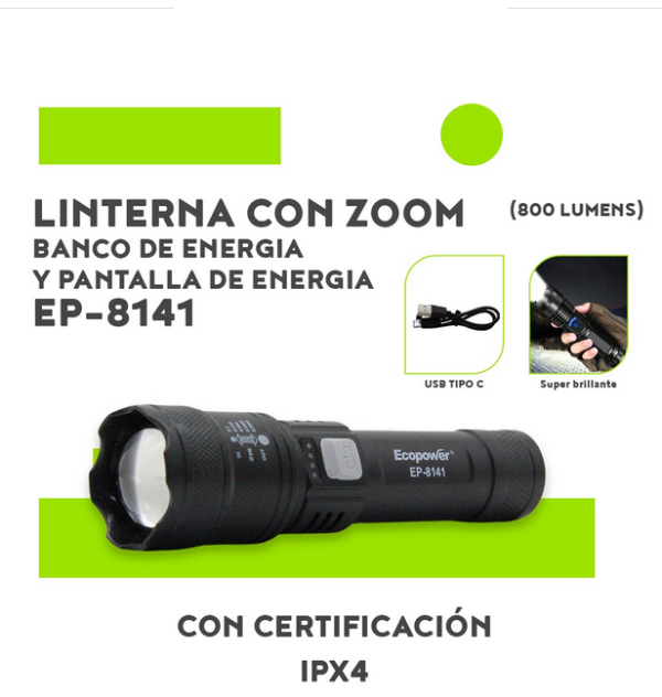 Ilumina tu mundo con la linterna Ecopower EP-8141 ¿Buscas una linterna potente y versátil? ¡No busques más! La Ecopower EP-8141 combina estilo, funcionalidad y resistencia para satisfacer todas tus necesidades de iluminación.